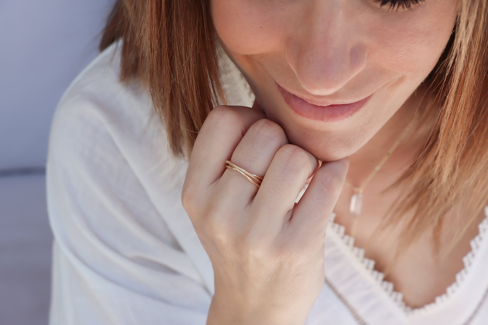 Audrey J.“Un anneau simple et raffiné à la fois. Je l'adore! Quelle belle créativité! On ressent la passion de la créatrice dans ce beau travail de qualité. Merci beaucoup!”